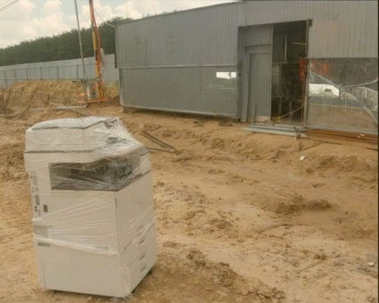 *工事現場へ配送した複合機。秘密保守もあり、背景環境はAIにより写真を修正加工しております。